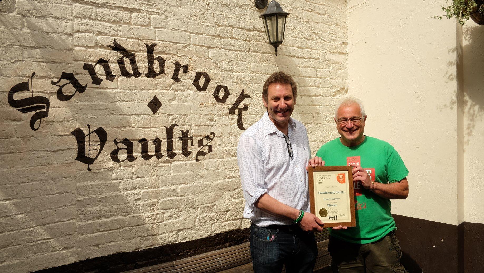 Joule’s Brewery is proud to announce that Laurence and his team at the Sandbrook Vaults have not only been presented with Market Drayton CAMRA Pub of the Year Award 2019 but also overall Telford & East Shropshire CAMRA Award 2019. The Vaults will now also be put forward for Shropshire CAMRA Pub of the Year 2019.
