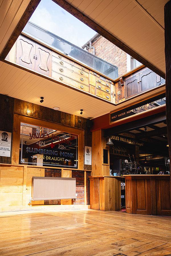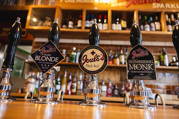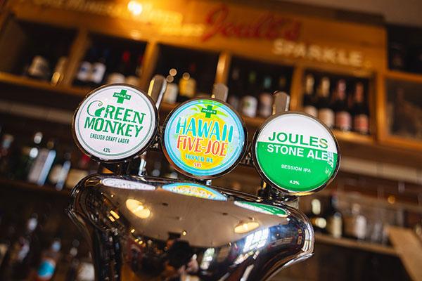 Always on Tap, Joule’s Pale Ale, Slumbering Monk, Pure Blonde and our English craft lager Green Monkey, alongside our rotating seasonal ale and cold craft beer. All brewed in Market Drayton with pure Shropshire mineral water.