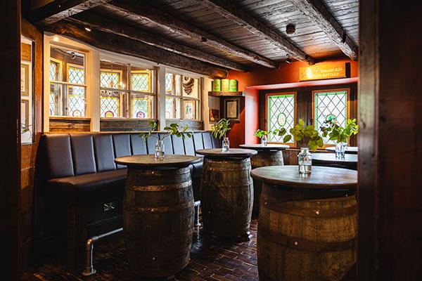 The central bar is the hub of the pub with a lovely open fire to enjoy with great rooms off perfect for smaller gatherings, the Admirals room and the Vaults are ideal spots for enjoying a pint and the paper, a family meal or a private chat.