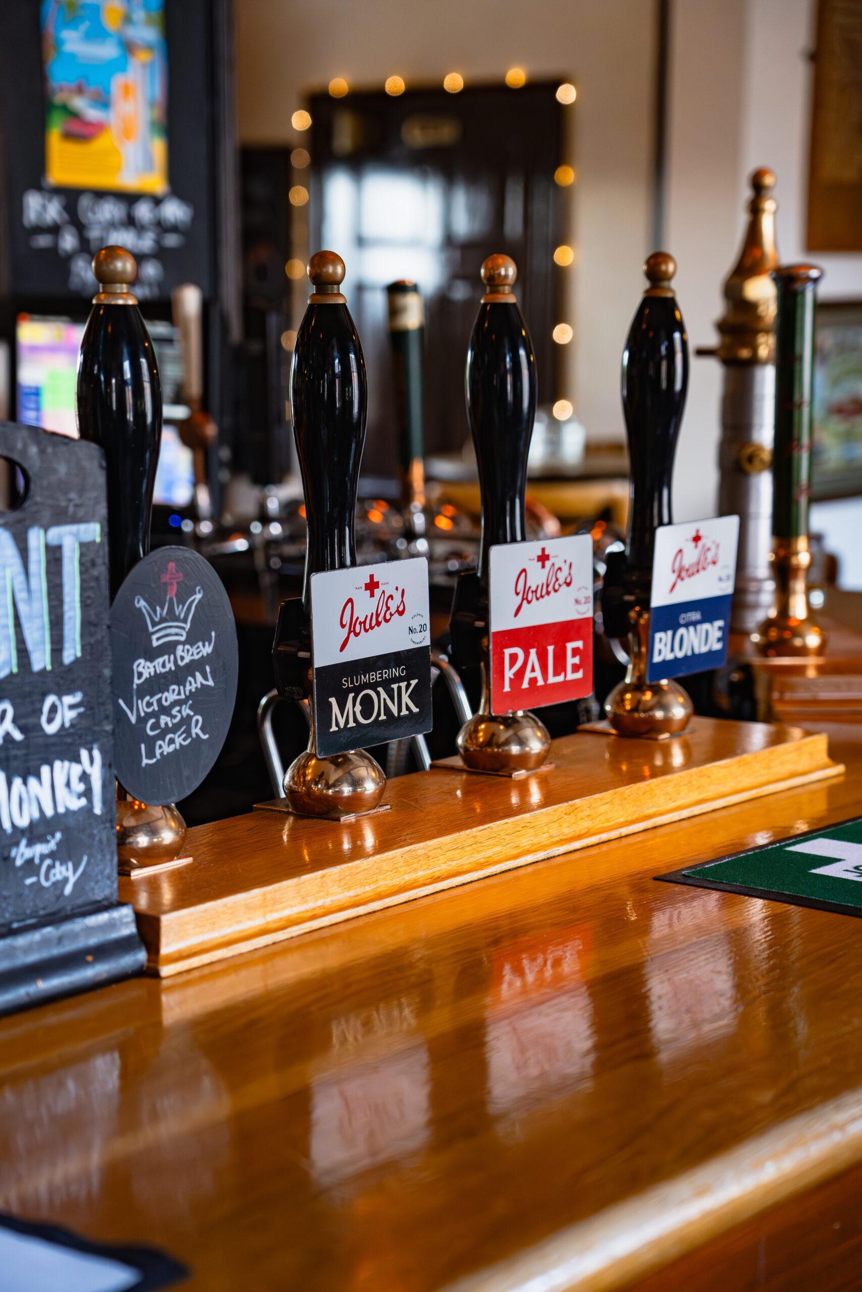 Always on Tap, Joule’s Pale Ale, Slumbering Monk, Pure Blonde and our English craft lager Green Monkey, alongside our rotating seasonal ale and cold craft beer. All brewed in Market Drayton with pure Shropshire mineral water.