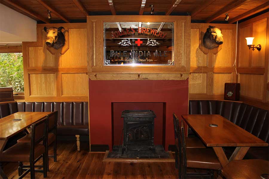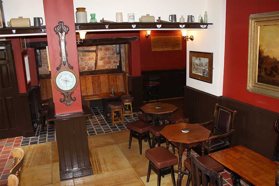 The back bar used to be the coaching stables and has been known as the ‘back room’ for years. It was once the extra smart room, totally separate and the beer used to be tuppence more. Now the beer prices are the same but it’s still a shade quieter than the old bar and with its own real fire.