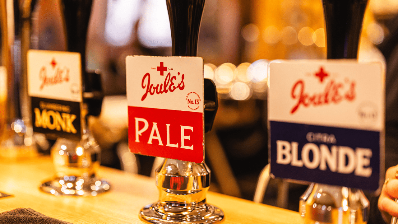 Always on Tap, Joule’s Pale Ale, Slumbering Monk, Pure Blonde and our English craft lager Green Monkey, alongside our rotating seasonal ale and cold craft beer. All brewed in Market Drayton with pure Shropshire mineral water.