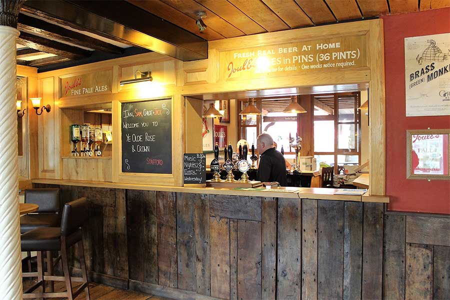 Ye Olde Rose and Crown sits snugly on Market Street, just off the market square between the Gatehouse Theatre and Stafford’s fabulous central library. We’re really proud to have our Stafford Tap house, because Joule’s has a very long history in Stafford and the old Brewery had lots of houses in the town.