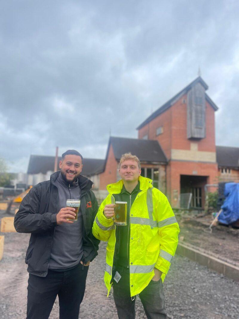 The weather hasn’t slowed us down, Here’s the lads enjoying a well-deserved pint, standing where the museum will eventually be!