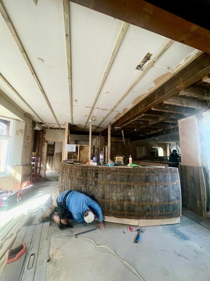 We’ve crafted what might just be Shropshire’s biggest beer barrel yet. The entire bar has been repurposed from old barrels to create one giant centerpiece – well… what else would we have for our brewery tap? Have a look at the team putting it together!