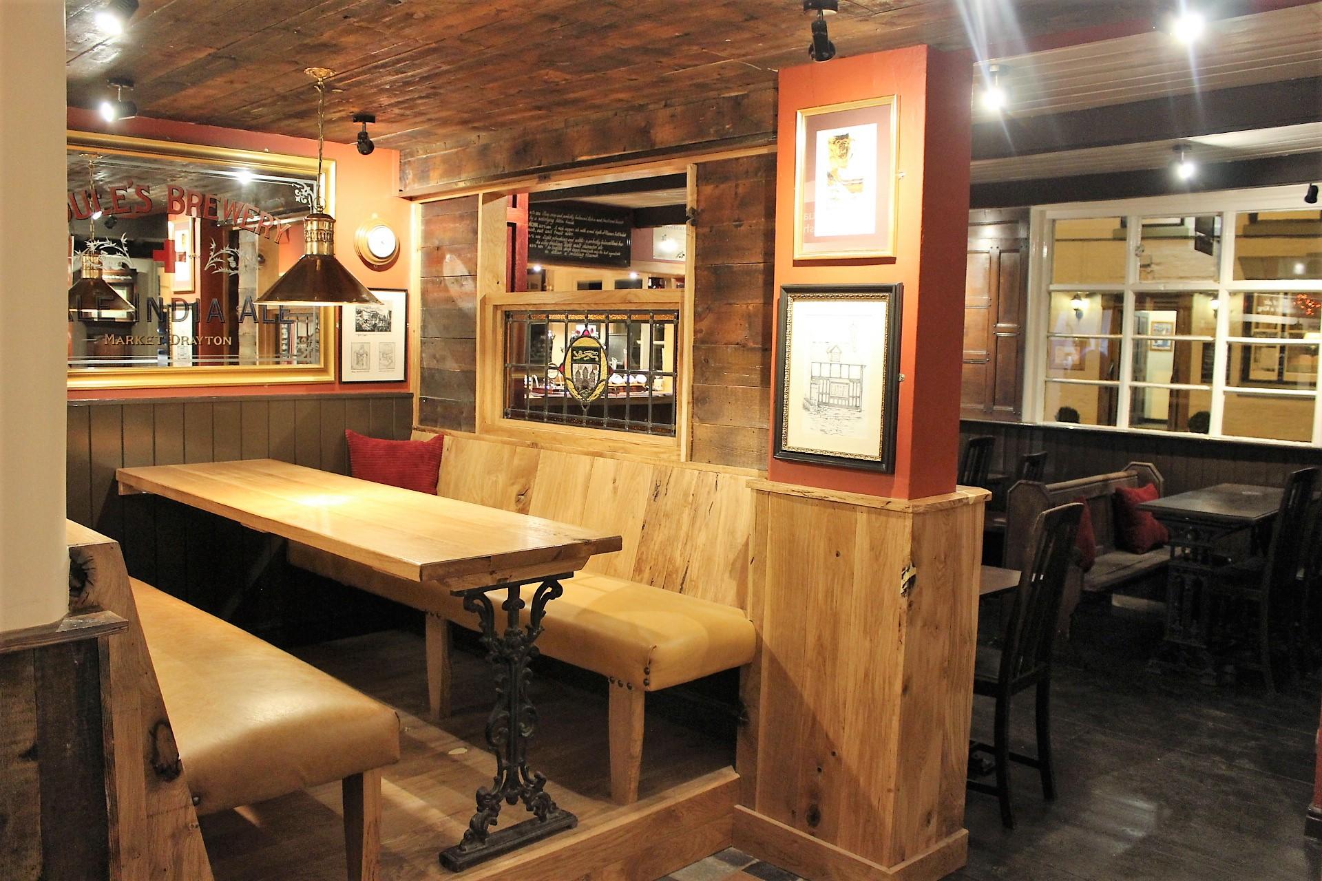 A key part of the Taphouse’s restoration in 2018 was the addition of the Boathouse as a nod to Bridgnorths oldest society, the Rowing Club. The reclaimed oak paneling is accented with new slip bricks and traditional Joule’s enamel signs, creating the perfect place for community events, private functions, and bank holiday festivities.