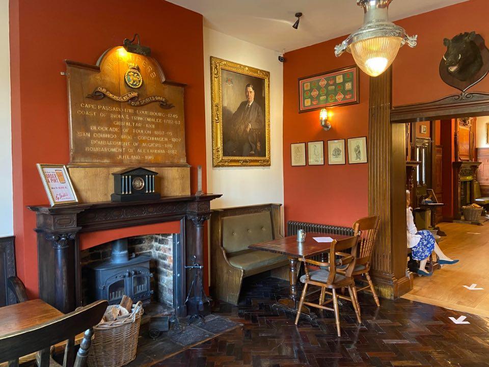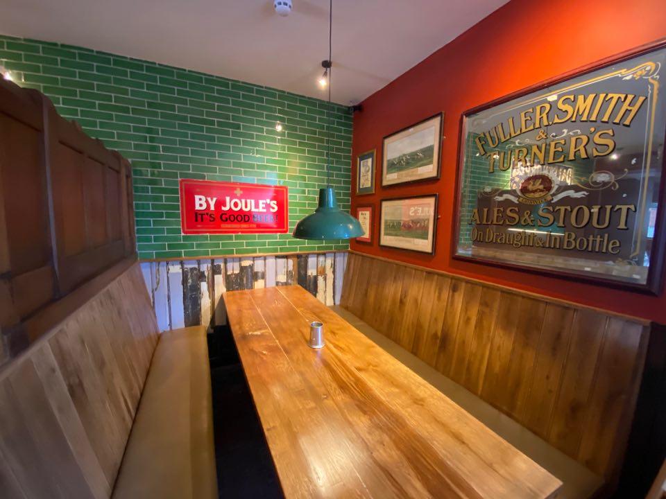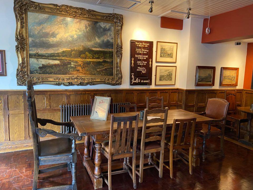 Joule’s has invested £250,000.00 on the site, including some beautiful reclaimed panelling from a mansion in Lowestoft. Victoria Colclough, Brand Director for the Brewery, adds, ‘The Walnut Room is of exceptional quality, made of solid English Walnut, featuring four pairs of pilasters, each hand-carved and tapering. Two very finely carved central fireplaces of classical design and with a hand-carved monogram ‘HH’ make up the centrepiece. When we saw the pieces, they were a perfect match for the Swan to reflect the pubs quality and our ambition for its bright future’ Joule’s added their own gilded monogram during the reinstallation of the panels at the Swan Hotel in 2020.